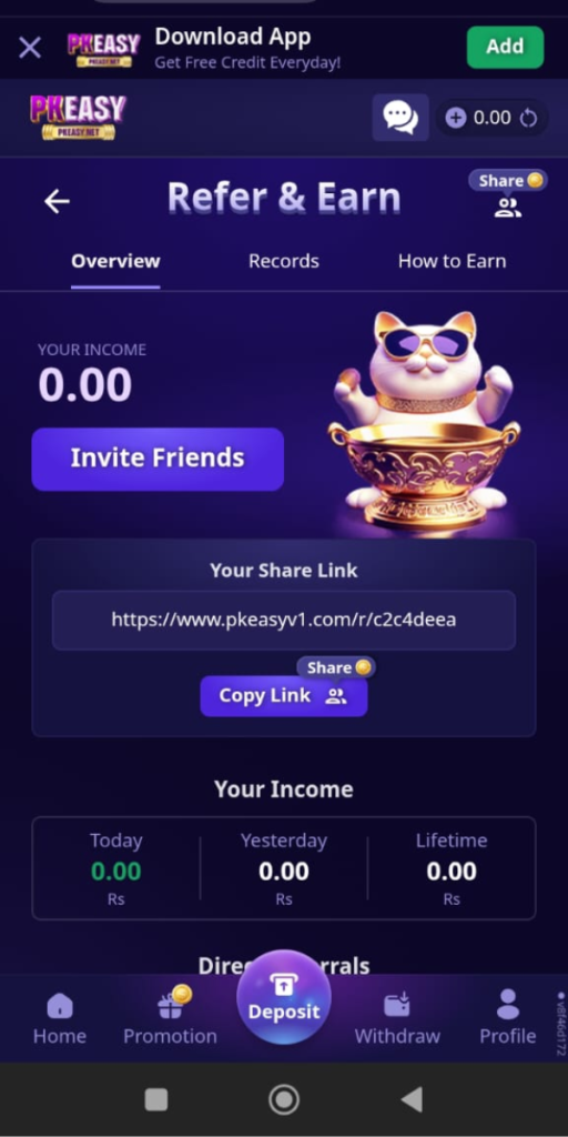 Add Money & Withdraw Earnings in PK EASY Game